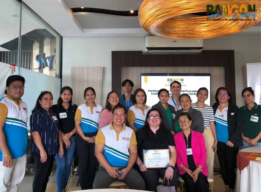 As part of its efforts to strengthen the institutional capacity of member organizations, BANGON conducted the Organizational Development (OD) Training Series, starting with its first session on July 24, 2025, at the Kew Hotel in Tagbilaran City, Bohol. This session focused on three areas: Basic Parliamentary Rules and Procedures, Minutes Writing, and Resolution Crafting—aimed at reinforcing governance, improving meeting facilitation, and refining documentation within member organizations.