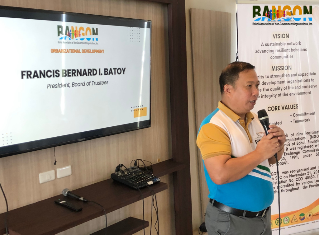 Representatives from BANGON member organizations actively participated, including BIDEF, Inc., led by Francis Bernard I. Batoy; PROCESS Bohol, led by Aurelio S. Salgados, Jr.; IMAP Bohol, led by Corazon L. Paras; FCBFI, led by Virginia M. dela Cuesta; SWCFI, led by Regina Sagpang; and UBCDFI, led by Dr. Gloria T. Casabal. Participants valued the actionable insights and technical advice offered by the presenters.